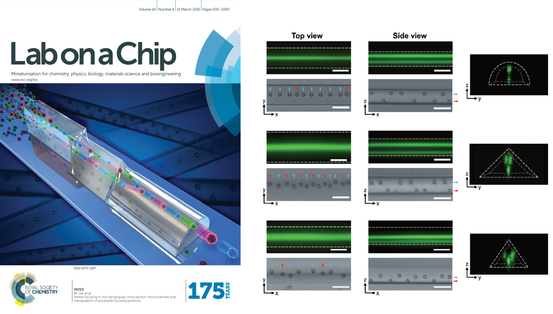 39. Mani, G. K., Chae, M., Yang, H., & Lee, W. (2026) Microfluidic Solid-State pH Sensor for Dynamic Monitoring of Extracellular pH in Live Cell Cultures. ACS Appl. Mater. Interfaces. 38. Chae, M., Nam, S. M., Seo, S., Choi, Y.-han, Yang, H., Kim, J., Jung, B.-J., & Lee, W. (2025) Picoliter-Volume Isothermal Titration Calorimetry UsingParylene Chip Calorimeter Integrated with on-DemandDroplet Microfluidics. small. 2504872 37. Hwang, H., Jung, B-J., Park, J., Jeong, Y., Choi, Y., Kang, J.Y., & Lee, W. (2025) Integrated parylene-based thin-film microfluidic device for time-resolved cryo-electron microscopy. Adv. Funct. Mat. 2418224 36. Kang, I., Bilbily, J., Kim, C. Y., Shi, C., Madasu, M. K., Jeong, E. Y., Parker, K. E., Kwon, D. A., Jung, B. J., Yang, J. S., Lee, J., Kabbaj, N. D. L., Lee, W., Yoon, J. B., Al-Hasani, R., Xiao, J., McCall, J. G., & Jeong, J. W. (2024). Wireless Modular Implantable Neural Device with One-touch Magnetic Assembly for Versatile Neuromodulation. Adv Sci, 12(4), 2406576 35. Choi, Y.-h., Kim, W.-J., Lee, D., Jung, B.-J., Shin, E.-C., & Lee, W. (2024). Microfluidic Capture Device for Simple, Cell Surface Marker-Based Quantification of Senescent CD8+ T Cells. BioChip Journal, 18: p.382-392 34. Kim, J.-a., Y.-h. Choi, & W. Lee. (2022). Alteration of Inertial Focusing Positions in Triangular Channels Using Flexible PDMS Microfluidics. BioChip Journal, 16(3): p. 342-350. 33. Jung, B.-J., Jang, H., Lee, G. Y., Kim, J., Song, Z., Pyun, J. C., & Lee, W. (2022). Surface Functionalization and Bonding of Chemically Inert Parylene Microfluidics Using Parylene-A Adhesive Layer. BioChip Journal, 16(2): p. 168-174. 32. Satheeshkumar, C., Jung, B.-J., Jang, H., Lee, W., & Seo, M. (2021). Surface Modification of Parylene C Film via Buchwald-Hartwig Amination for Organic Solvent-Compatible and Flexible Microfluidic Channel Bonding. Macromol. Rapid Commun. 42(8): p. e2000520. 31. Y. H. Choi, J. A. Kim, & W. Lee. (2020). Changes of Inertial Focusing Position in a Triangular Channel Depending on Droplet Deformability and Size. Micromachines, 11(9), 839. 30. D. Lee, Y. Choi, & W. Lee. (2020). Enhancement of inflection point focusing and rarecell separations from untreated whole blood. Lab on a Chip, 20, 2861-2871. 29. D. Lee, J. Kim, E Song, J. Y. Jeong, E. Jeon, P. Kim, & W. Lee. (2020). Micromirror-Embedded Coverslip Assembly for Bidirectional Microscopic Imaging. Micromachines, 11(6), 582. 28. J. Kim, A. Kommajosula, Y. Choi, J. Lee, E. Jeon, B. Ganapathysubramanian, & W. Lee. (2020). Inertial focusing in triangular microchannels with various apex angles. Biomicrofluidics, 14(2), 024105. 27. J. Kim, S. M. Nam, J. Kim, Y. N. Choi, T. H. Kim, K. J. Chun, H.T. Chung, & W. Lee. (2020). Microfluidic Chip Calorimeter for Small-field Radiation Dosimetry. IEEE Sensors Journal, 20(10), 5165-5175. 26. J. Kim, S. M. Nam, H. Jang, J. P. Chung, J. Kim, B. Kim, K. J. Chun, & W. Lee. (2020). Development and application of chip calorimeter as an X-ray detector. Curr. Appl. Phys., 20(2), 337–343. 25. Seo, S., Kim, J., Choi, Y., You, J., Im, S., & Lee, W. (2019). Parylene based thin-film microfluidic lens array fabricated by iCVD nano-adhesive bonding. Polymer, 181, 121763. 24. Jang, S., Jung, B.-J., Kim, M.-J., Lee, W., & Kim, D.-P. (2019). Reaction-Volume Dependent Chemistry of Highly Selective Photocatalytic Reduction of Nitrobenzene. React. Chem. Eng., 4(10), 1752-1756. 23. Nam, S. M., Kim, K., Kang, I. S., Park, W., & Lee, W. (2019). Generation of 3D Microparticles in Microchannels with Non-rectangular Cross Sections. BioChip Journal, 13(3), 226-235. 22. Ryu, J., Kim, J., Shon, M. J., Sun, J., Jiang, X., Lee, W., & Yoon, T. Y. (2019). Profiling protein-protein interactions for single cancer cells with in situ lysis and co-immunoprecipitation. Lab on a Chip, 19(11), 1922-1928. 21. Lee, D. J., Park, H. S., Koo, K., Lee, J. Y., Nam, Y. S., Lee, W., & Yang, M. Y. (2018). Gold Binding Peptide Identified from Microfluidic Biopanning: An Experimental and Molecular Dynamics Study. Langmuir, 35(2), 522-528. 20. Yu, J. Y., Kim, J., Holland, D. B., Mou, Y., Chiu, H., Blake, G. A., Lee, W., & Guo, C. L. (2018). Multiphoton structured thin-plane imaging with a single optical path. Optics Letters, 43(21), 5271-5274. 19. Shin, S., Kim, J., Lee, J. R., Jeon, E. C., Je, T. J., Lee, W., & Park, Y. (2018). Enhancement of optical resolution in three-dimensional refractive-index tomograms of biological samples by employing micromirror-embedded coverslips. Lab on a Chip, 18(22), 3484-3491. 18. Jung, B.-J., Kim, J., Kim, J.-A., Jang, H., Seo, S., & Lee, W. (2018). PDMS-Parylene Hybrid, Flexible Microfluidics for Real-Time Modulation of 3D Helical Inertial Microfluidics. Micromachines, 9, 255. 17. Lee, D., Nam, S.,Kim, J., Di Carlo, D. & Lee, W., (2018). Active control of inertial focusing position and particle separations enabled by velocity profile tuning with co-flow systems. Analytical Chemistry, 90 (4), 2902–2911 16. Kim, J., J. Lee, T. Je, E. Jeon, & W. Lee (2017). Size-dependent inertial focusing position shift and particle separations in triangular microchannels. Analytical Chemistry, 90 (3),1827–1835 15. Jang, H., Kang, I., Kim J., Kim J., Cha, Y.J., Yoon, D.K., & Lee, W. (2017) Nanofluidic Chip for Liquid TEM Cell Fabricated by Parylene and Silicon Nitride Direct Bonding. Nanotechnology, 28(37), 375301 14. Kim, J., You, J., Nam, S., Seo, S., Im S., & Lee, W. (2017) Rollable Microfluidic Systems with Microscale Bending Radius and Tuning of Device Function with Reconfigurable 3D Channel Geometry. ACS Appl. Mater. Interfaces, 9(12), 11156–11166 13. Jang, H., Kang, I., Lee, Y., Cha, Y.J., Yoon, D.K., Ahn, C.W & Lee, W. (2016) Direct transfer of multilayer graphene gown on a rough metal surface using PDMS adhesion engineering. Nanotechnology, 27, 365705 12. Kim, K., Yu, H., Koh, J., Shin, J.H., Lee, W. & Park, Y., (2016) Remote sensing of pressure inside deformable microchannels using light scattering in